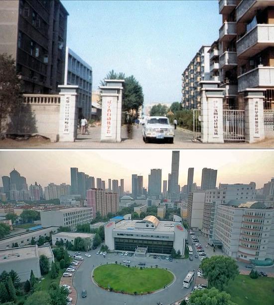 上圖為上世紀(jì)80年代沈陽自動化研究所的外觀圖,下圖為2016年沈陽自動化所航拍圖。(沈陽自動化所提供)
