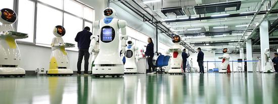 沈陽新松機器人公司在研究平臺測試服務(wù)機器人(2016年12月6日攝)。新華社記者 姚劍鋒 攝