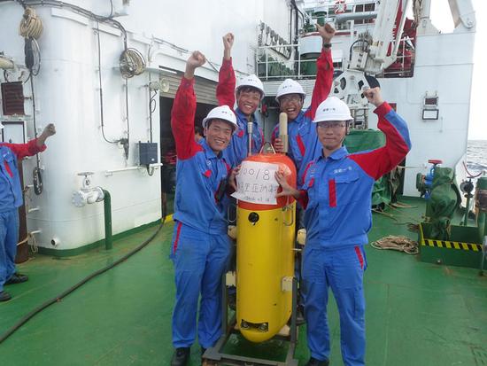 2016年7月18日,“海斗”成功下潛至萬米后返回甲板。(沈陽自動化所提供)