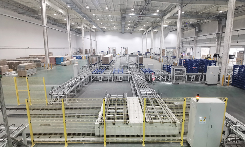 全球領(lǐng)先的高性能光伏產(chǎn)品制造商的10GW電池+10GW組件智能工廠項目,該制造商原料庫與組件庫占地面積高達8.7萬平方米,原料和組件成品均具有超大尺寸、超大重量的特點,現(xiàn)場各類非標重載堆垛機60余臺,貨位總數(shù)近9萬個,重載穿梭車百余臺,僅組件車間環(huán)穿軌道長度就接近1公里,從項目規(guī)模到效率要求均遠超行業(yè)常規(guī)本項目為原料、輔料、包材及成品的存儲,并利用自動物流輸送系統(tǒng)完成自動化立體倉庫和組件車間直接的物料輸送。工廠建成投產(chǎn)后,可年產(chǎn)N型高效光伏電池10GW、高效光伏組件10GW,供應(yīng)全球市場需求。
